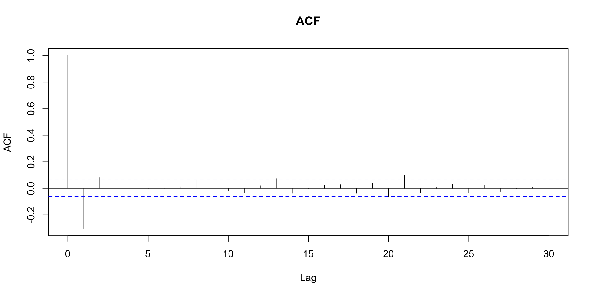 Se \(|\theta| < 1\), \[(Y_t - \mu)(1 + \theta B)^{-1} = \epsilon_t \rightarrow (Y_t - \mu)(1 - \theta B +\theta^2 B^2 - \theta^3 B^3 + \cdots) = \epsilon_t\]