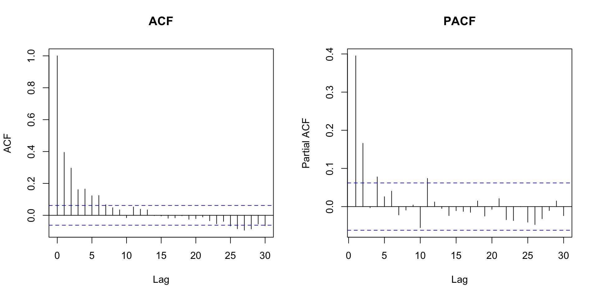 \[\phi_{kk} = \dfrac{\theta_1^k(1 - \theta_1^2)}{1 - \theta_1^{2(k+1)}}, \quad k \geq 1.\]