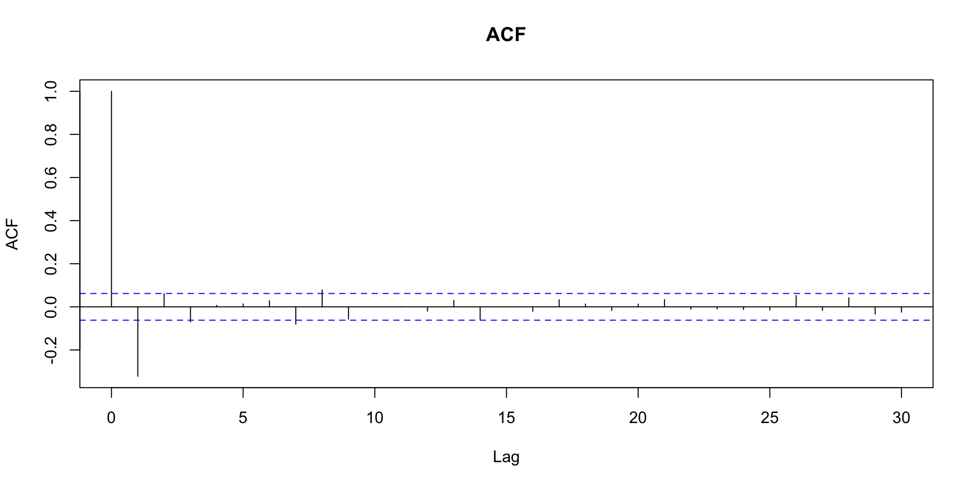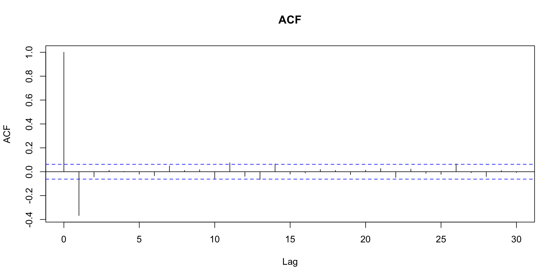 Um processo estocástico \(\{Y_t\}\) é dito de médias móveis de ordem q, denotado MA(q), se seu processo gerador de dados é dado por \[Y_t = \mu + \epsilon_t + \theta_1 \epsilon_{t-1} + \theta_2 \epsilon_{t-2} + \cdots + \theta_q \epsilon_{t-q} \equiv Y_t - \mu = (1 + \theta_1B + \cdots + \theta_qB^q)\epsilon_t\] em que \(\mu\), \(\theta_1, \cdots, \theta_q\) (\(\theta_1, \cdots, \theta_q \neq 0\)) são parâmetros reais e \(\epsilon_t \sim RB(0, \sigma^2_{\epsilon})\).