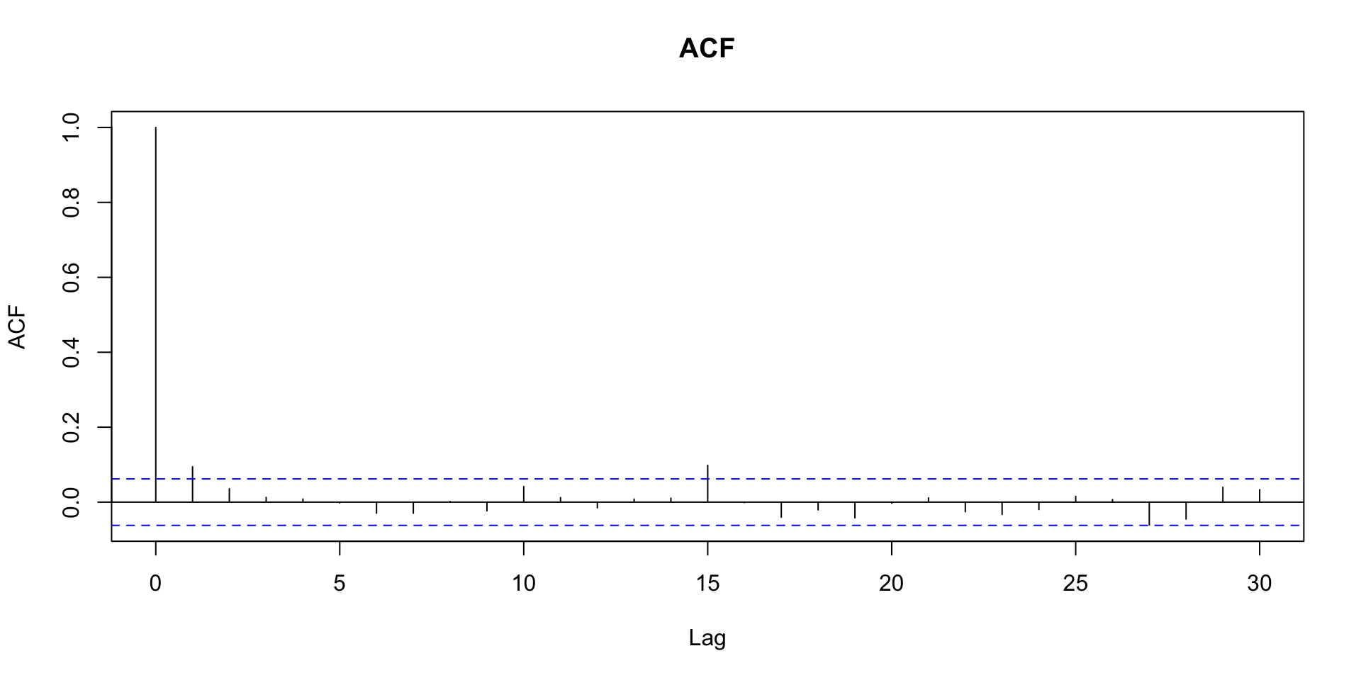 A média é constante, a variância é constante e a covariância não depende de \(t\). Ou seja, o processo é estacionário.